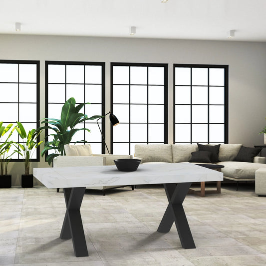 TAVOLO ALLUNGABILE MODERNO GAMBA X NOBILITATO EFFETTO CEMENTO